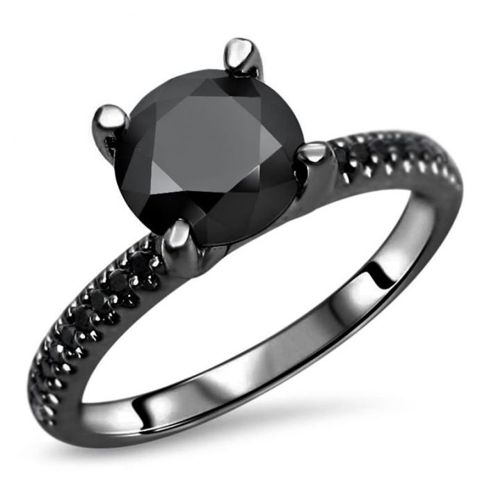 1.50ct Black Round Diamond Prong Set Engagement Ring 14k Black Gold