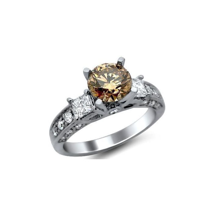 1.95ct Fancy Brown Round Diamond 3 Stone Engagement Ring 14k White Gold