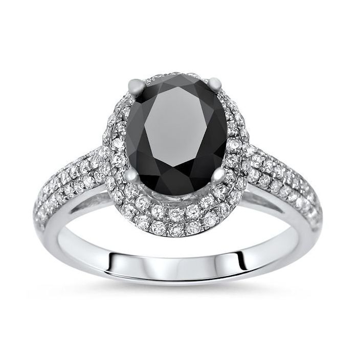 2.15ct Oval Black Diamond Engagement Ring 18k White Gold