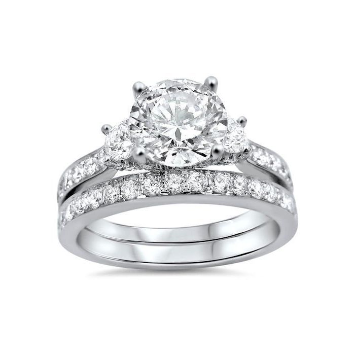 2.25ct Round Diamond 3 Stone Engagement Ring Bridal Set 18k White Gold