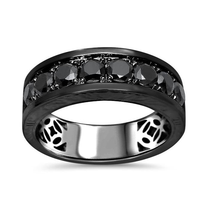 Mens 1.45ct Black Round Diamond Wedding Band Ring 14k Black Gold