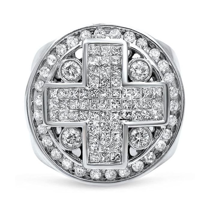 Mens 3.50ct Princess Cut Diamond Cross Ring 14k White Gold